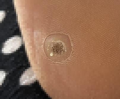 이번에는 사마귀 부위가 완전히 까맣게 변하면서 딱지가 들리기 시작했어요.
